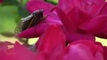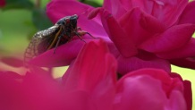 魅力花瓣蝉舞昆虫玫瑰的花朵