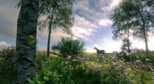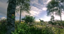 树, 马, 蘑菇, 桦木, 春天, 景观