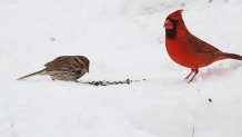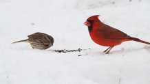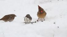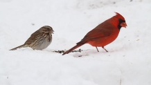 红衣主教, 麻雀, 鸟, 红鸟, 动物, 雪