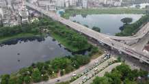 俯拍的角度下,城市的全景展现在我们眼中,高楼林立,交通纵横交错,你可以在城市风景中使用。