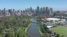 随着镜头的不断推进,可以看到城市的绿植是非常多的,有绿色的植被,有长长的河水,远处就是城市,你可以在城市风景中使用。