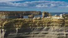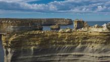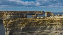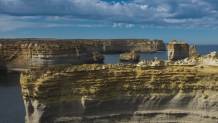 俯拍镜头下的海岸全景同样显得宏伟壮阔,海天一色,旁边光秃秃的土黄色岛屿显得格外肃静,你可以在自然风景中使用。
