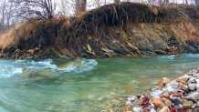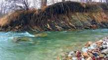 一湾清流正顺流而下,水面清澈见底,清凉悠扬。你可以在自然风景中使用。