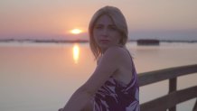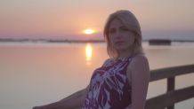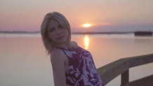 女士, 金发女郎, 年轻, 码头, 海, 海滩, 夏天, 假期, 女性, 人, 走, 日落, 拉古纳, 威尼斯, 全景
